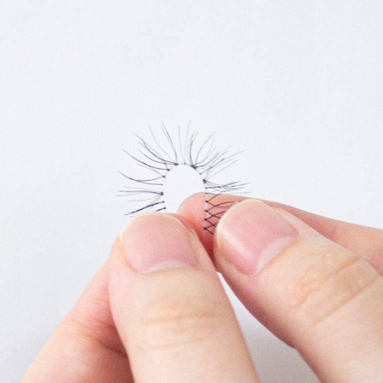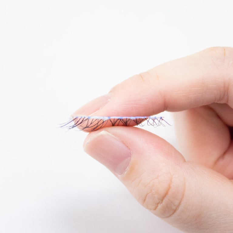 つけまつげを付けたときの心地よさ、ナチュラルな印象は芯(軸)が決め手。柔らかすぎず硬すぎない、適度な質感の芯はまぶたのラインに沿って、しなやかにフィットします。グルー(専用接着剤)も付けやすいので、つけまつげは初めて、という方も安心して使うことができます。