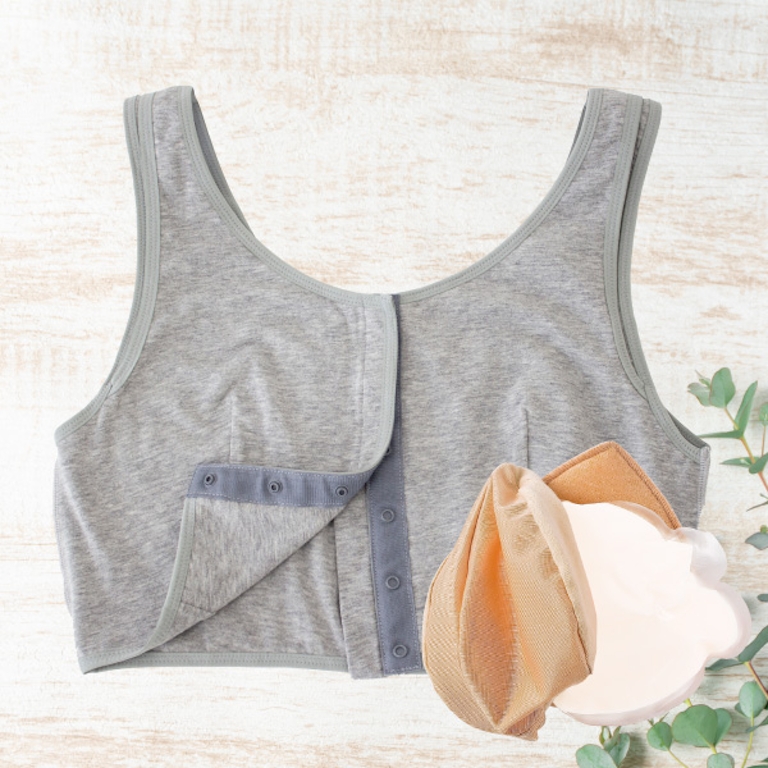 乳がんの手術後には専用の下着があります。一般の下着と比べ、縫い目が傷口にあたらないようになっていたり、着脱しやすい前開きであったり、手に痺れがあるときも留めやすいテープやボタンであったり…さまざまな工夫がされています。