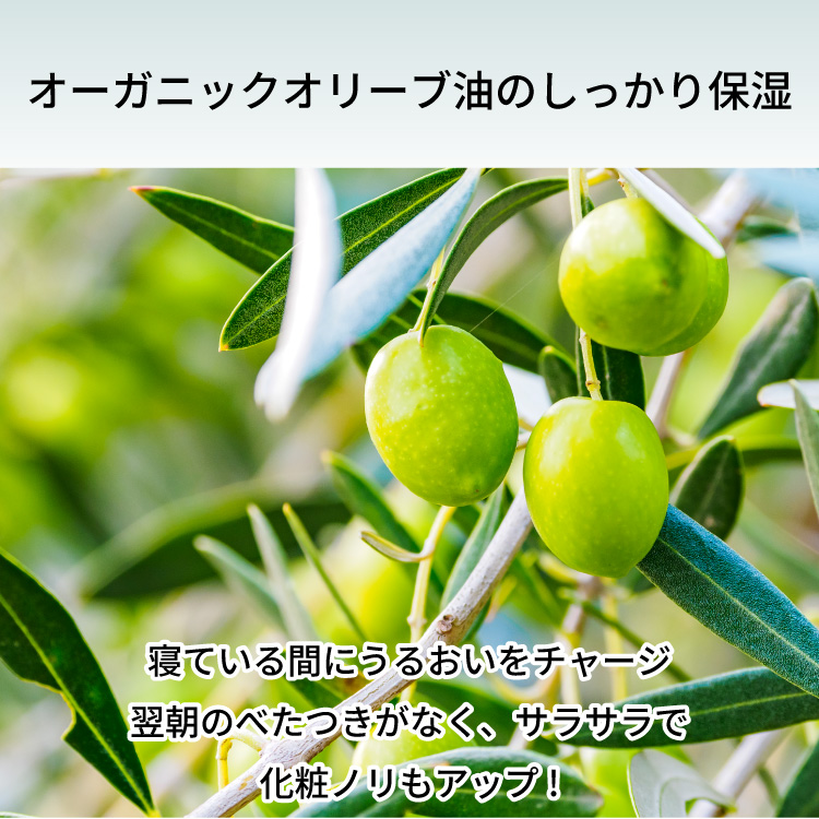 寝ている間にうるおいをチャージ。翌朝のべたつきがなく、サラサラで化粧ノリもアップします。