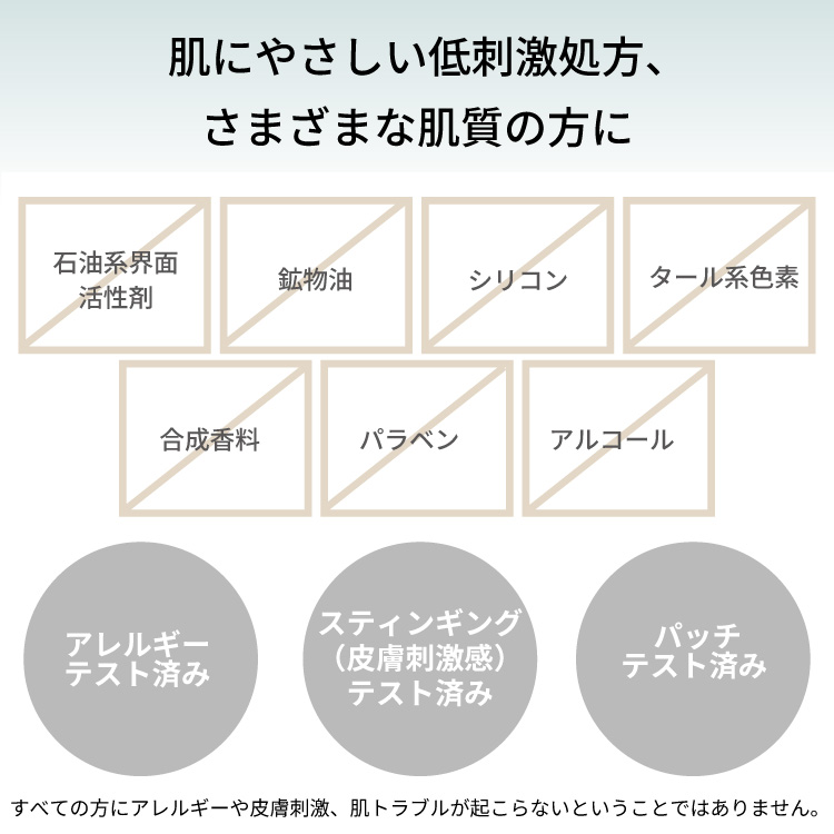 肌にやさしい低刺激処方でさまざまな肌質の方にご使用いただけます。