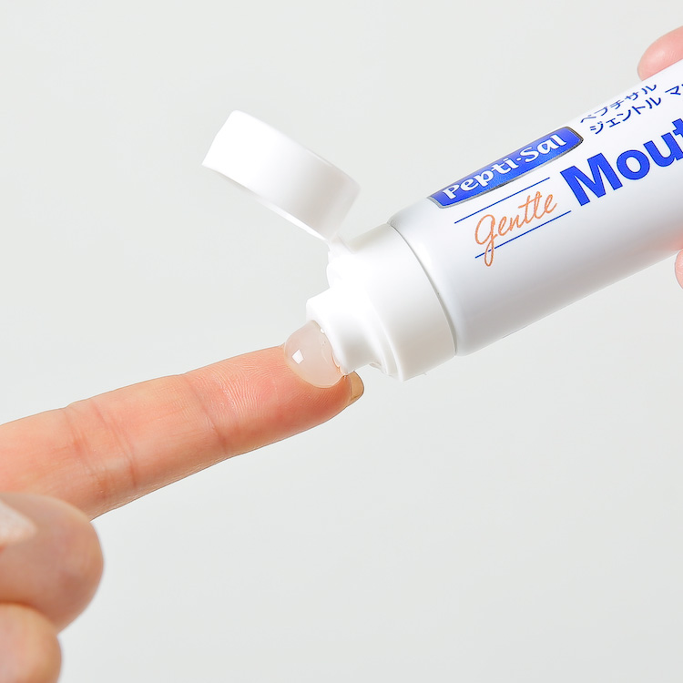 清潔な指に適量(1cm位)をとり、口に含み、指先または舌で口内にまんべんなく薄くぬり広げてください。余分なものはふき取ってください。