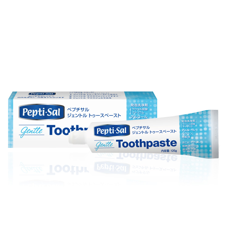 「Peptide(ペプチド)」+「Saliva(唾液)」の造語。唾液のチカラに着目して開発された低刺激性のオーラルケア製品です。デリケートなお口をやさしくケアし、お口の環境を健康に保ちます。