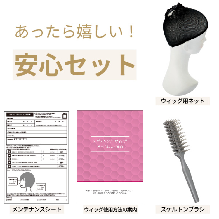 試着したけど前髪が長いな、いつも自分の前髪より長いから違和感があるな、という場合でも安心の購入手続き後3か月以内であれば前髪カットが無料!レディススヴェンソンのウィッグ知識に長けた専門スタッフがメンテナンスを承るので郵送でも安心です。