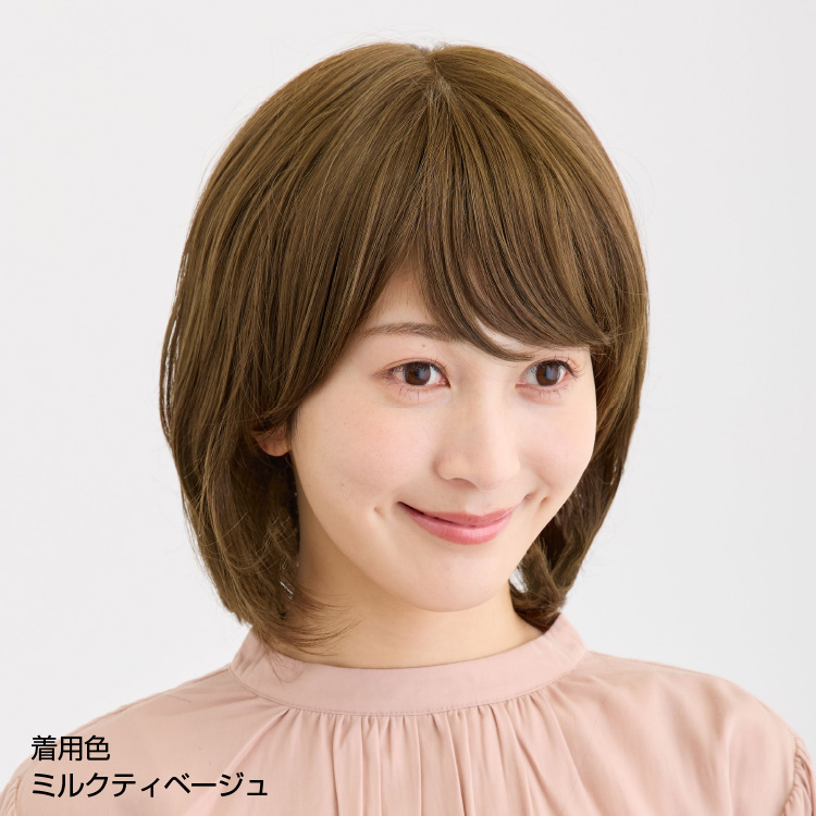 空気感のある毛先のカールが、やわらかさを出すふんわりボブスタイルのウィッグです。