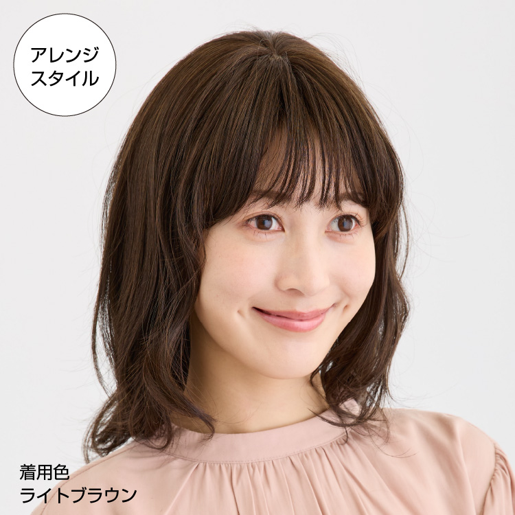 ランダムに入っている絶妙なカールで立体感と動きを出し、垢抜けた雰囲気にしてくれるミディロングスタイルのウィッグです。