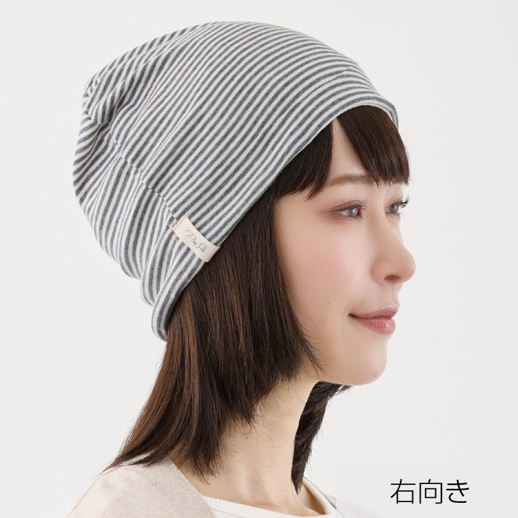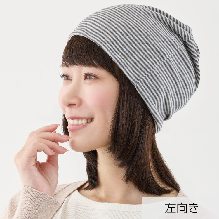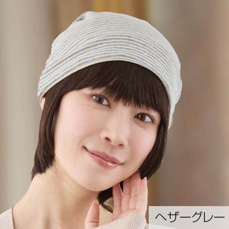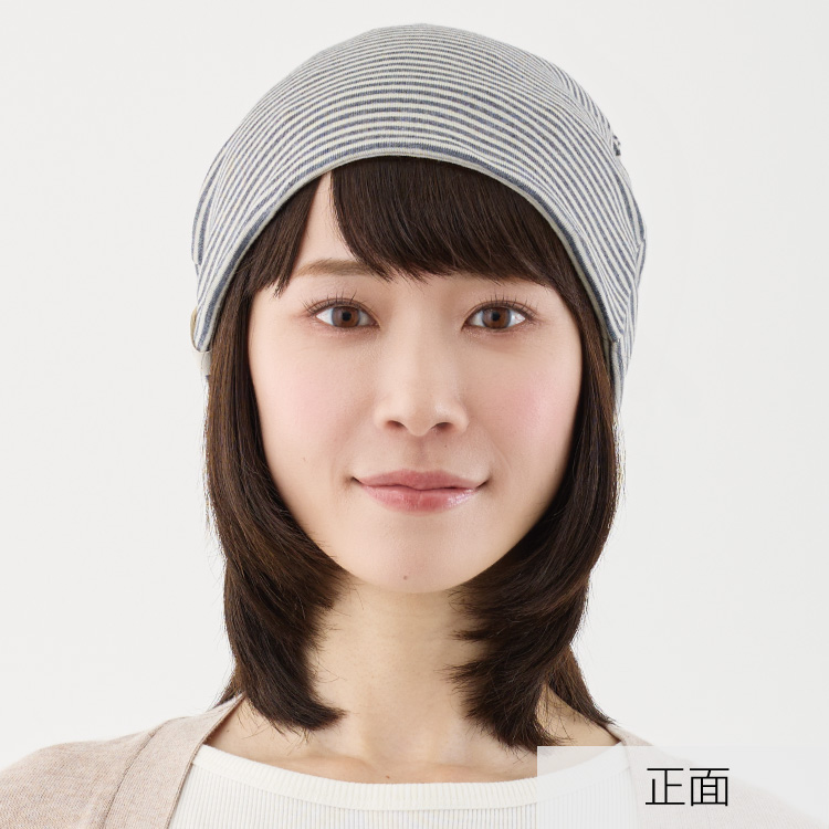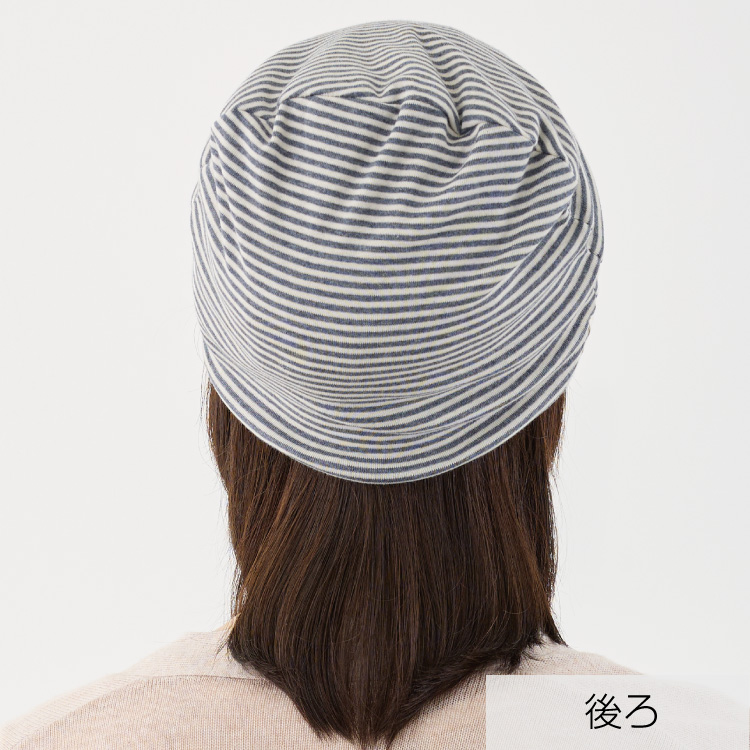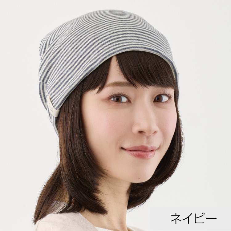 薄くやわらかい生地を二重にしているため、髪の毛や頭皮の透けも気にせず、年間を通してご利用いただける帽子に仕上がりました。