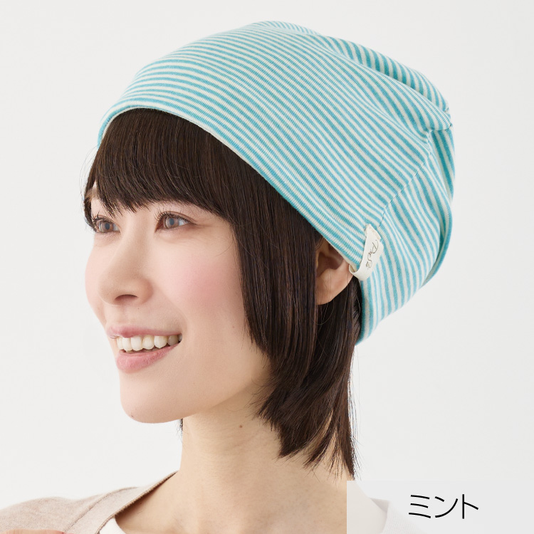 オーガニックコットンの帽子で敏感肌の方も安心してお使いいただけます。