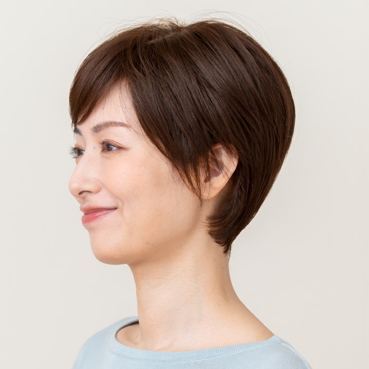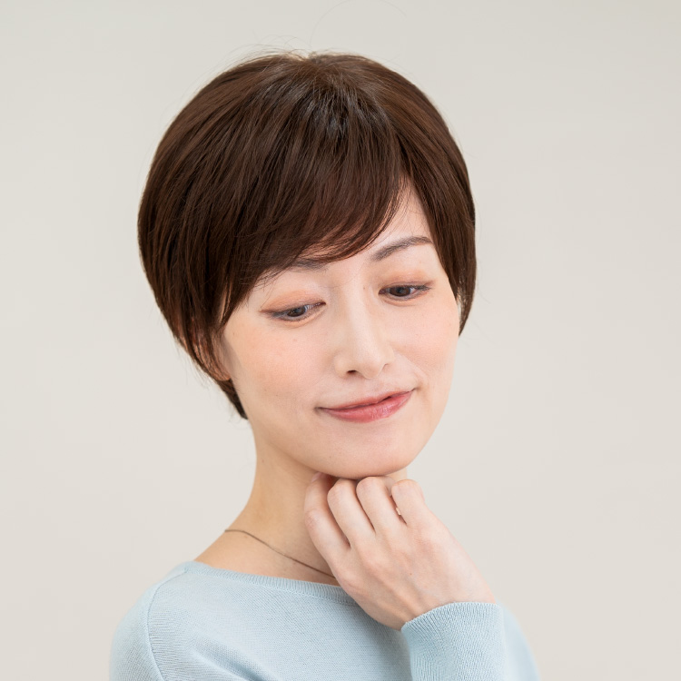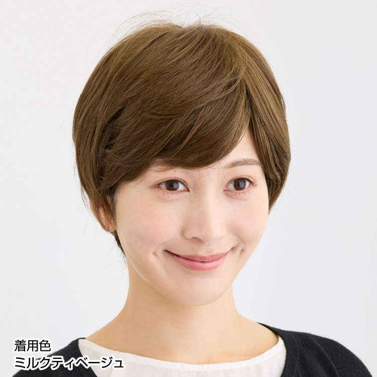 フェイスラインのふんわりと美しいカーブが、自然に柔らかくあなたを演出してくれるショートボブスタイルのウィッグです。