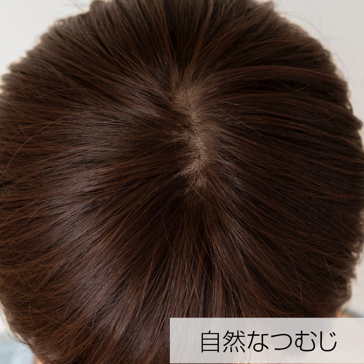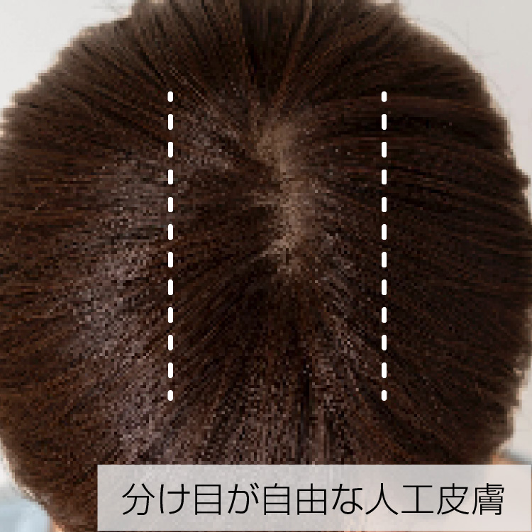 広めの人工皮膚を採用しています。分け目は左右白い線のあたりまで変更可能です。
