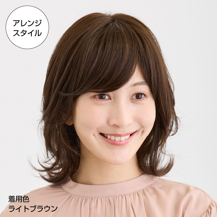 空気感のある毛先のカールが、やわらかさを出すふんわりボブスタイルのウィッグです。