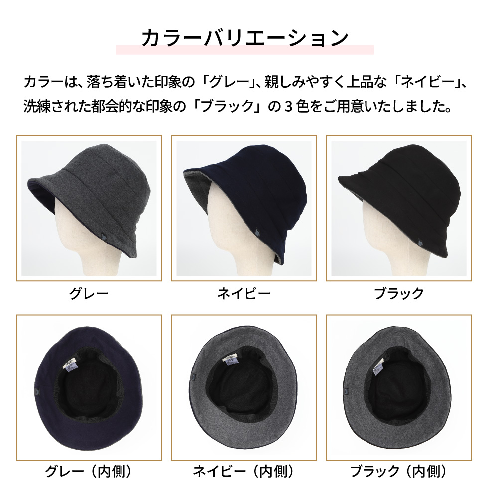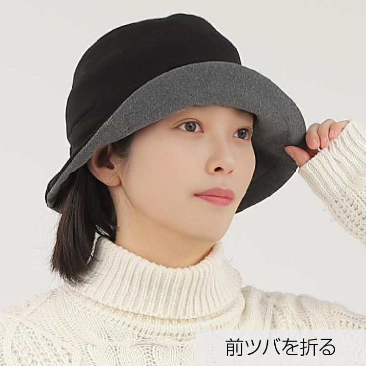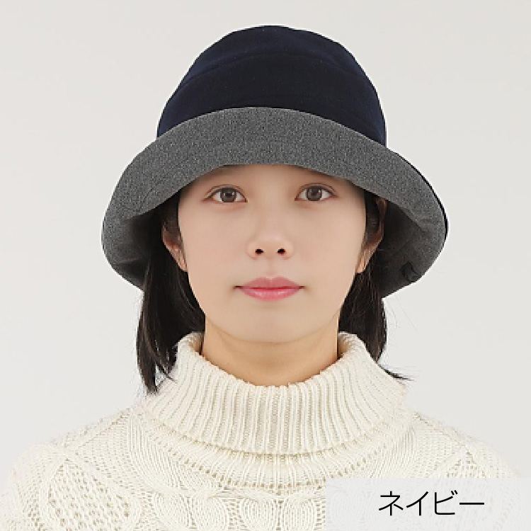 つばを下げれば日よけ対策に、つばを上げればお顔周りをパッと明るい印象に演出できる上品な一品。シンプルなフォルムながら、段がついた立体的なデザインがお洒落です。肉厚な生地で寒い冬の防寒対策にもぴったり!